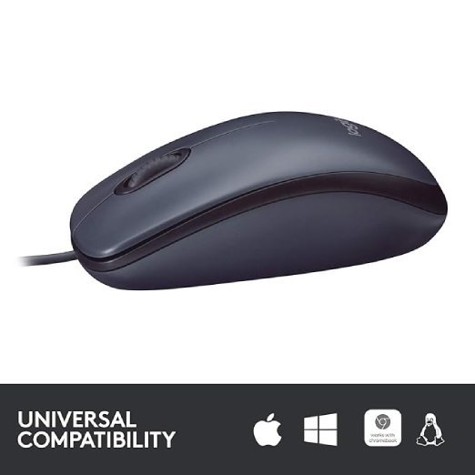 Logitech B100 Wired USB Mouse, 3 yr Warranty, 800 DPI Optical Tracking, Ambidextrous PC/Mac/Laptop – Black