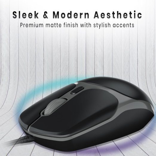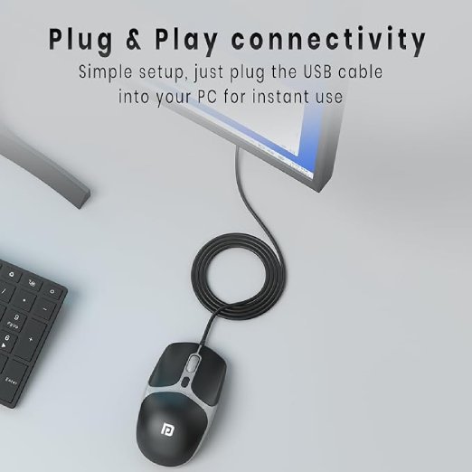 Portronics Toad 103 Wired Optical Mouse with 2400 DPI, Plug & Play, Ambidextrous, Hi-Optical Tracking, 1.5M Cable Length, 30 Lakhs Click Life, Ergonomic Mouse for Comfortable All-Day Grip (Black)