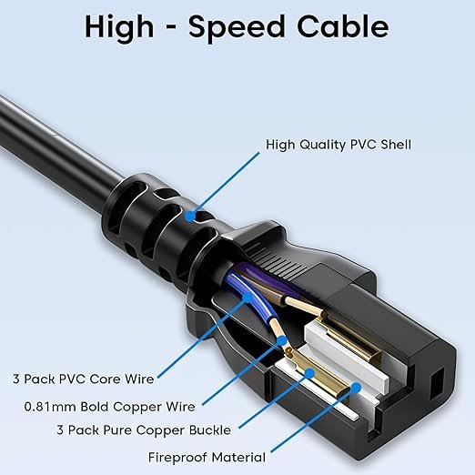 - ✅【Safe and Reliable Performance with Built-in Protection】: Engineered with overheat, over-current, over-voltage, and short-circuit protection, this power cable ensures maximum safety during use. The PVC outer shell offers environmental protection, waterproofing, and wear resistance, while the excellent conductivity guarantees a stable and secure connection at all times.