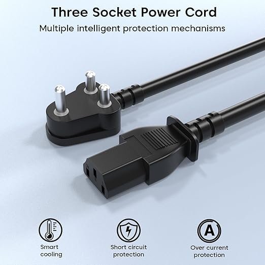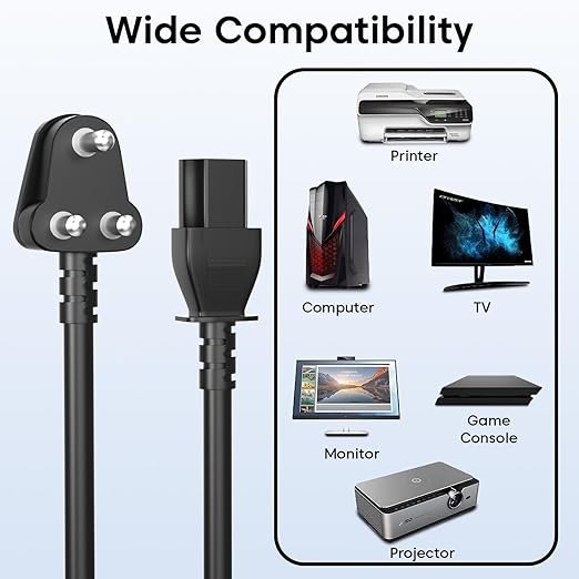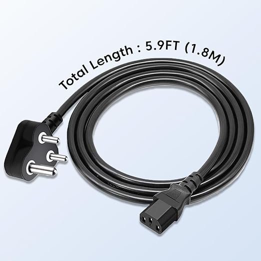 - ✅【Universal Compatibility with Multiple Devices】: Designed to fit almost any device that requires a standard 3-pin India plug with IEC connector, this replacement cable is compatible with desktop PCs, CPUs, monitors, TVs, SMPS, printers, projectors, scanners, gaming consoles, amplifiers, speakers, treadmills, and more. A reliable all-in-one cable solution for home, office, and industrial use.