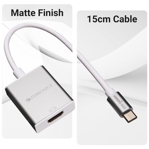 ZEBRONICS TA150H Type C to HDMI Converter, HDMI 4K, 15cm Cable, Compatible with MacBook | Samsung DeX | Windows Laptop, Elegant Matte Aluminium Design, White